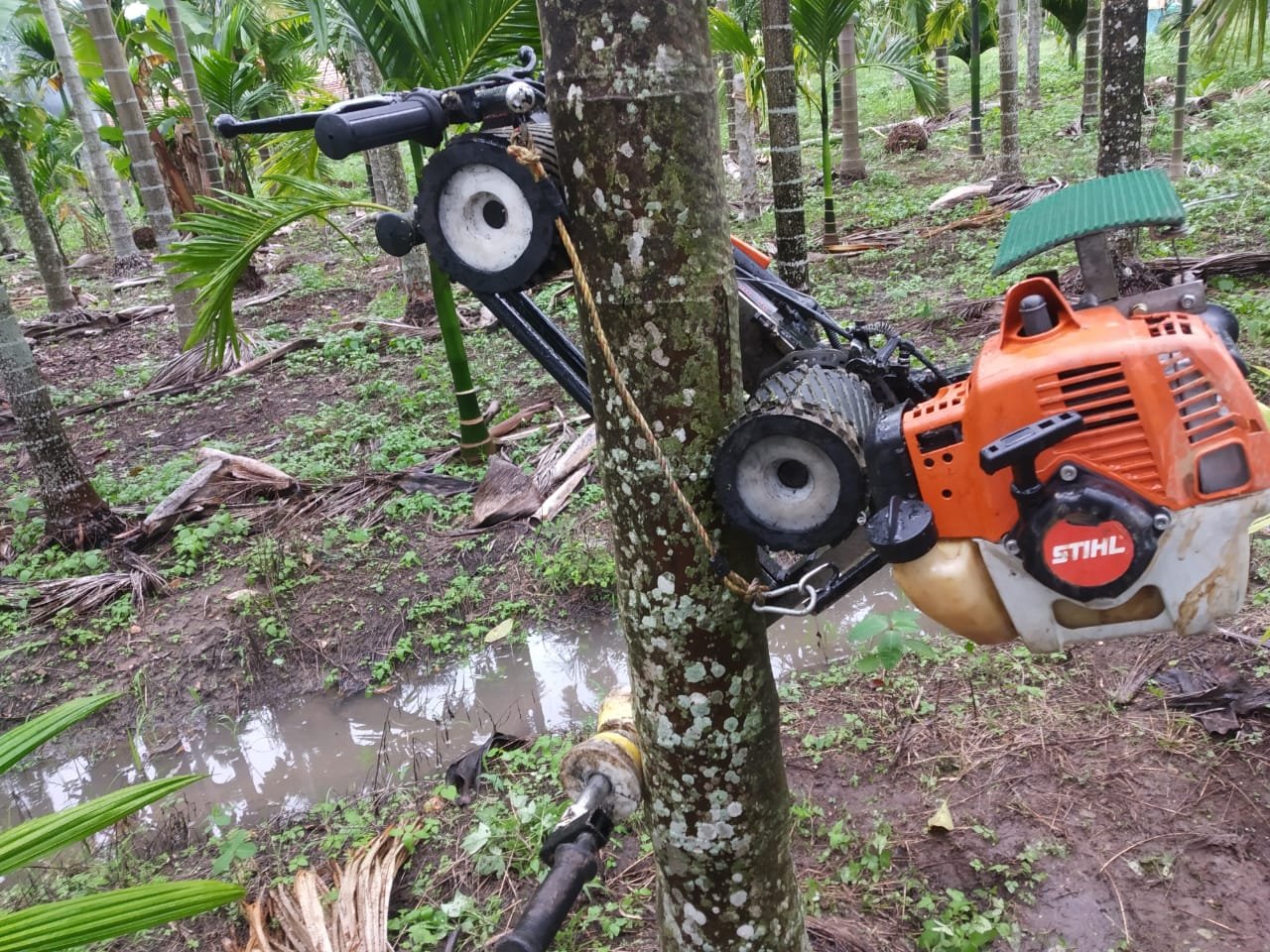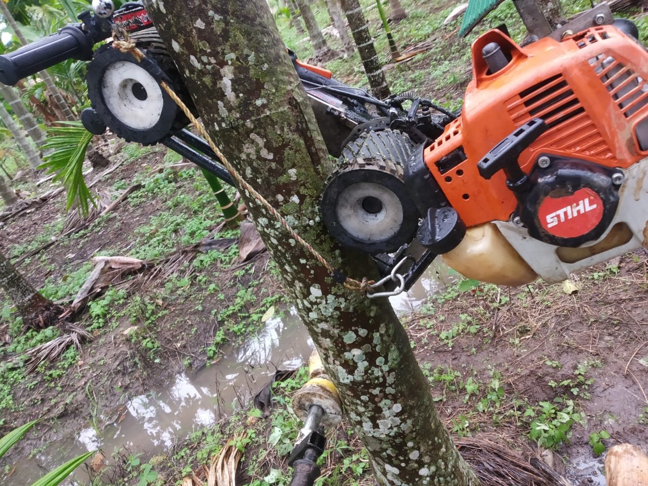 Powered by a high-performance 2-stroke petrol engine, this climbing machine is engineered to carry a single operator smoothly up arecanut trees. Its sturdy yet lightweight frame ensures balance and grip around the tree trunk, while the sit-and-ride design provides unmatched comfort during ascent and descent.